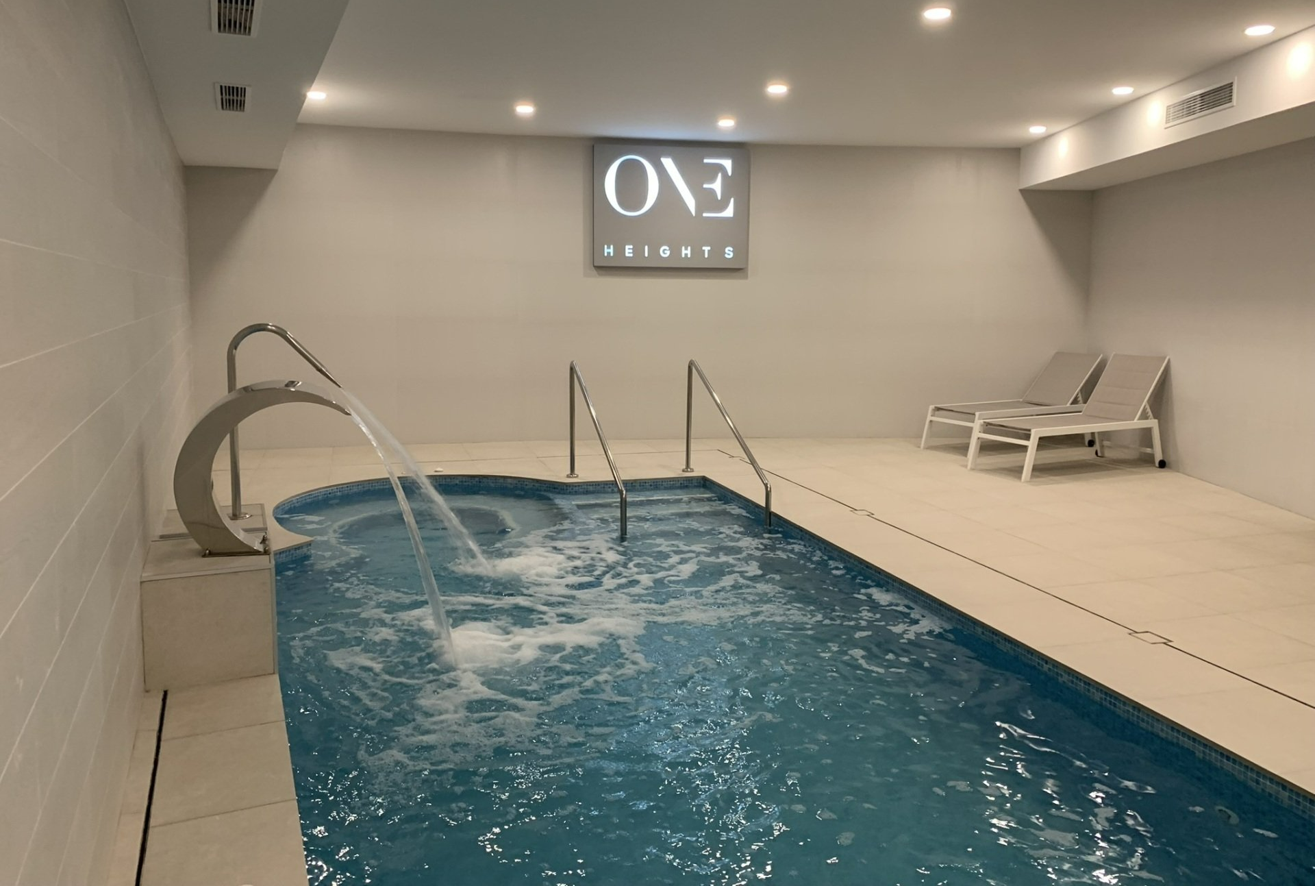 OneHeights.be is een omheind complex met conciërge en rond de klok beveiliging. Centraal in het complex ligt het grote infinity zwembad, welk door zijn onderwaterverlichting ’s avonds een magische gloed krijgt, omlijst door een verzorgde chill out zone met palmbomen en tropische planten. Daarnaast is er een spagedeelte met verwarmd binnenzwembad (open van december tot mei) met douchestraalcircuit en jacuzzi, Turks stoombad en sauna. Ideaal om je training in de ingerichte fitnessruimte af te sluiten of gewoon de dag verfrist te beginnen. Krijg je maar niet genoeg van de golfsport? Leef je dan uit in de indoor golfsimulator. Kortom, alles om wellness van geest en lichaam te verzorgen. OneHeights.be voorziet uiteraard voor je auto een plek in de parkeergarage onder het appartement en een berging voor bvb. je golfclubs.